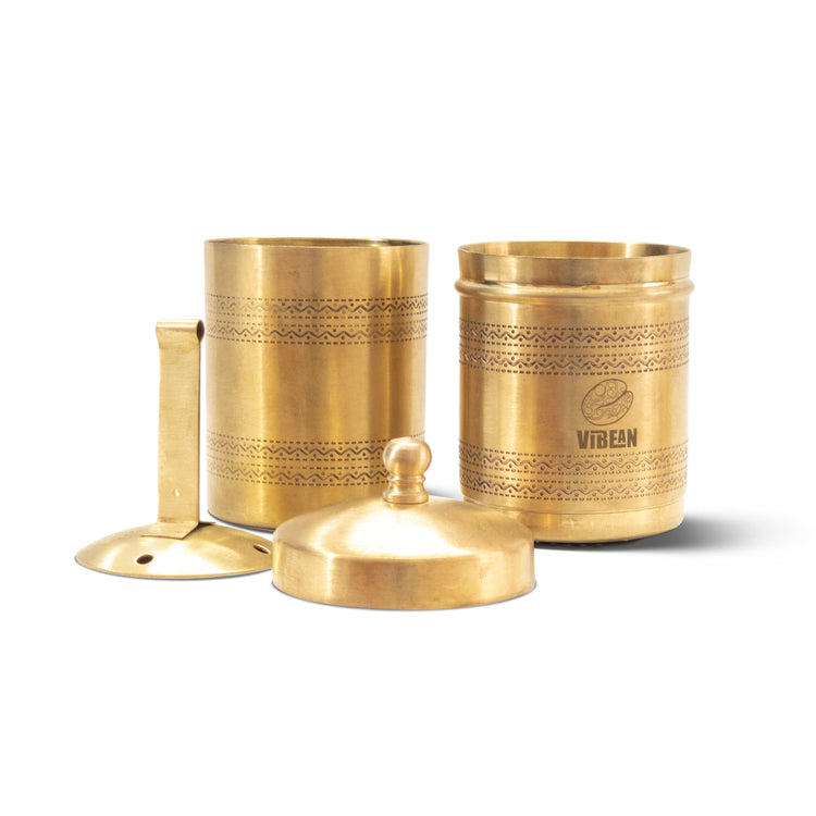 Experience the rich, robust taste of South India's iconic Vibean filter coffee with our Etched Brass South Indian Traditional South Indian filter Coffee maker. Crafted from premium-quality brass, this beautifully etched coffee filter is designed to bring the time-honored tradition of Vibean filter coffee brewing right into your home. With its authentic design and craftsmanship, it embodies the essence of heritage and culture passed down through generations.